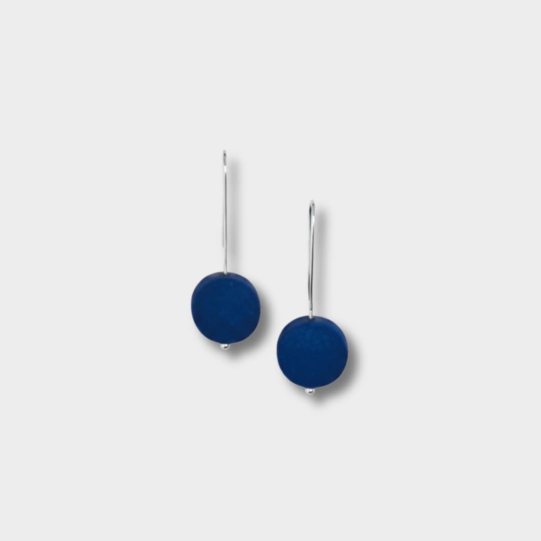Alma is a pair of handcrafted earrings built around simplicity and proportion. A single matte clay bead — rounded on the front with a flat back — hangs from a slim hook in 925 sterling silver. The shape is clean and understated, allowing colour and material to speak for themselves.